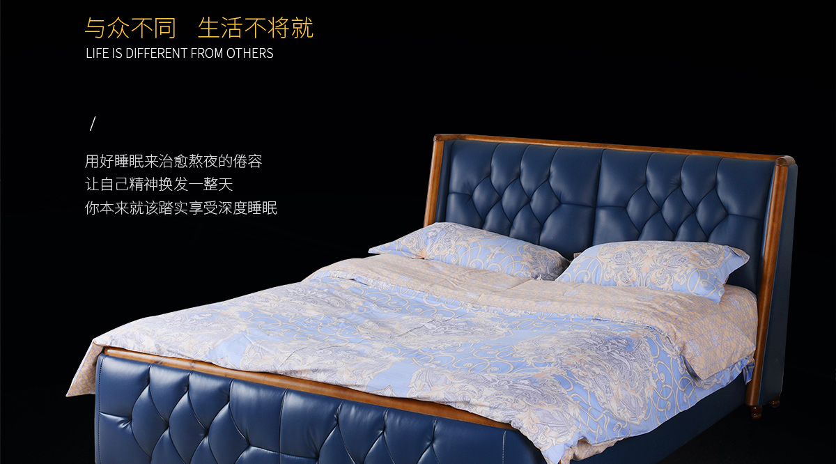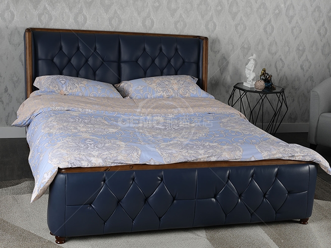頭層牛皮雙人床8098