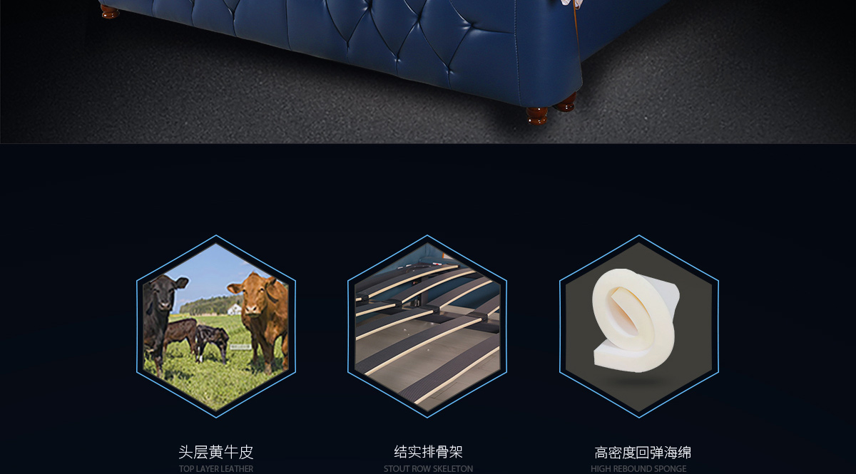 靠背材質:黃牛頭層牛皮靠背填充物:高密度環保定型回彈海綿