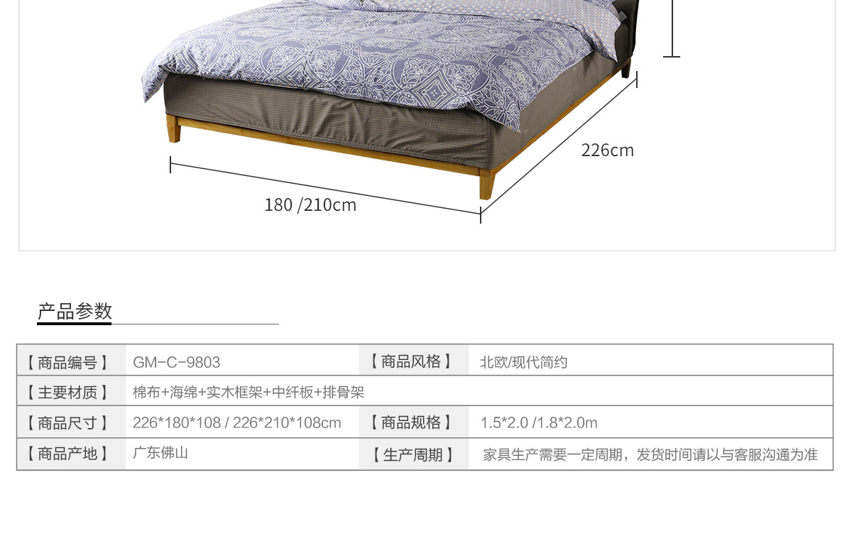 名稱:現代簡約布藝床9803