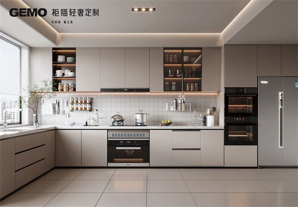 4、開放式廚房的儲物空間要充足。儲物空間可以讓廚房更加整潔,也可以方便儲存各種烹飪用具。儲物空間可以選擇吊柜、地柜、抽屜柜等多種類型。
