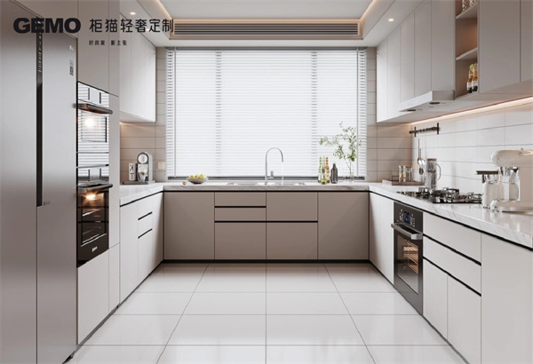 U型櫥柜是由兩個90度的直角和一個中間的直邊組成的,它可以最大限度地利用廚房的空間。U型櫥柜的優點在于,它的儲物空間最大,可以提供更多的儲物空間。此外,U型櫥柜還可以提供多個工作臺面,使得廚房工作更為高效。然而,U型櫥柜的缺點是,它的設計復雜,需要更多的預算。