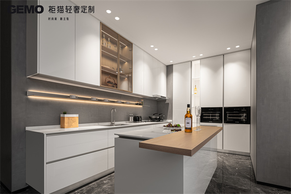 玻璃櫥柜門可以增加空間的視覺通透感,讓廚房看起來更加寬敞明亮。它適合用于展示精美的餐具或收藏品。然而,玻璃需要定期清潔以保持透明,且易碎的性質要求在使用過程中更加小心。