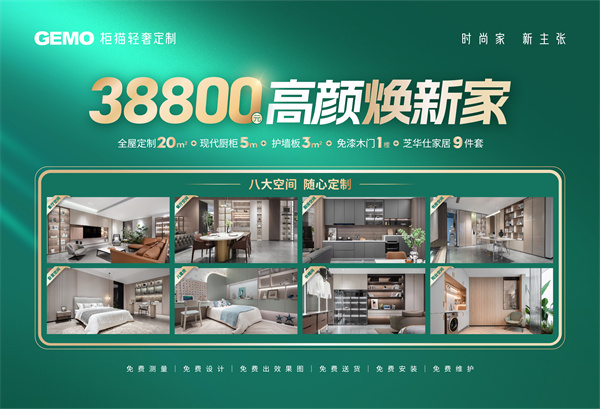 為了感謝廣大客戶一直以來對于柜貓的支持,在此雙節期間,我們又推出了“38800元高顏煥新家”的活動,套餐內容包含全屋定制20m2+現代櫥柜5m+護墻板3m2+免漆木門1樘+芝華仕家居9件套。趕快約上家人好友,一起來柜貓門店選購吧!